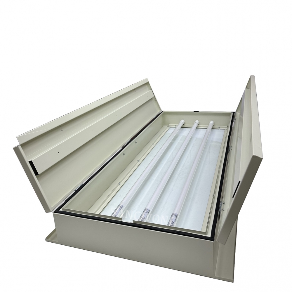 ➍ 燈具設計為上掀式,在燈具維護時可從無塵室上方更換不影響潔淨度,不會有室內換裝之危險性及停止生產作業